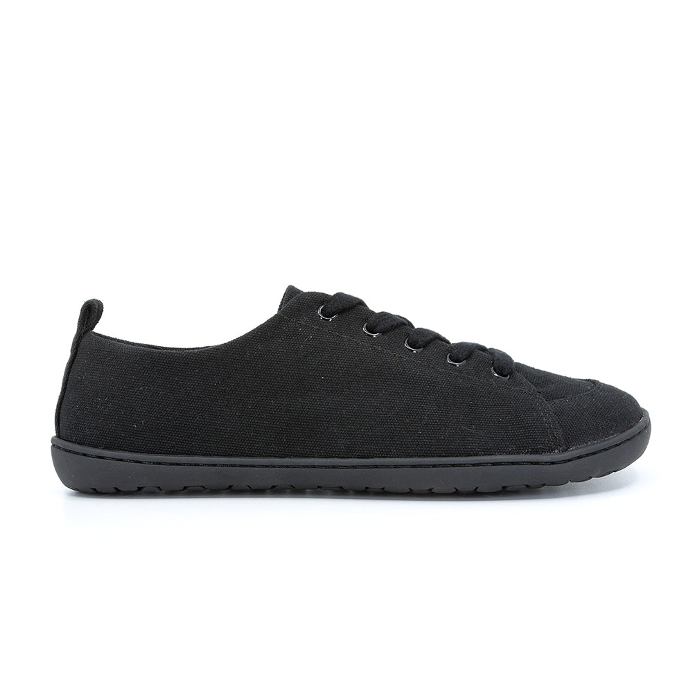 The Mukishoes Onyx Low tennis shoes model is a lovely, light barefoot shoe that features a 100% natural rubber sole, foot-friendly shape, and light organic cotton upper that does not restrict healthy foot movement. It’s highly flexible, available in sizes 36-48, and the dark hue can match virtually any outfit. These shoes are easy to clean and can be waterproofed for increased protection from the elements. Laces give these a good fit for a variety of widths and foot shapes. The model is 100% vegan.