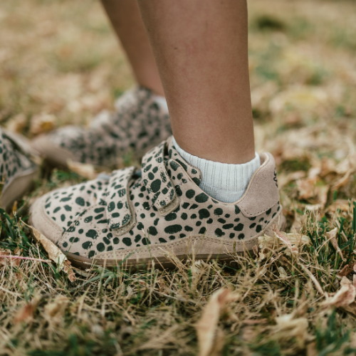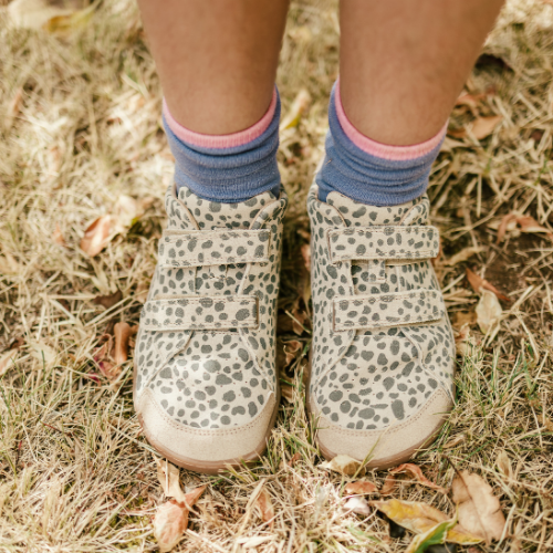 Cheetah print uppers with reinforced heel and toe